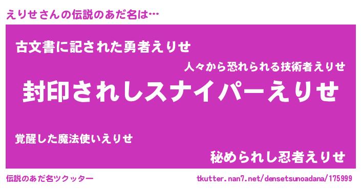 | 男性向けラノベタイトル風あだ名 | 『この素晴らしい世界にえりせを!』 |