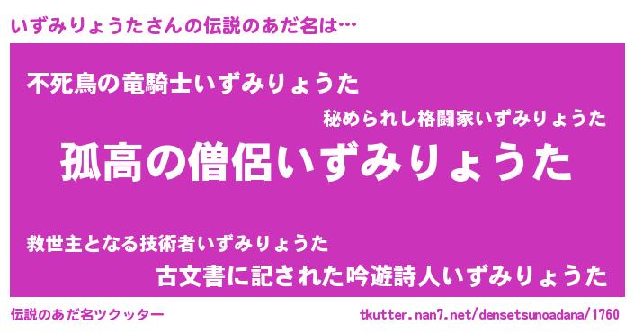 | ヒーロー風カッコイイあだ名 | 『ウルトラ戦士イズミリョウタ』 |