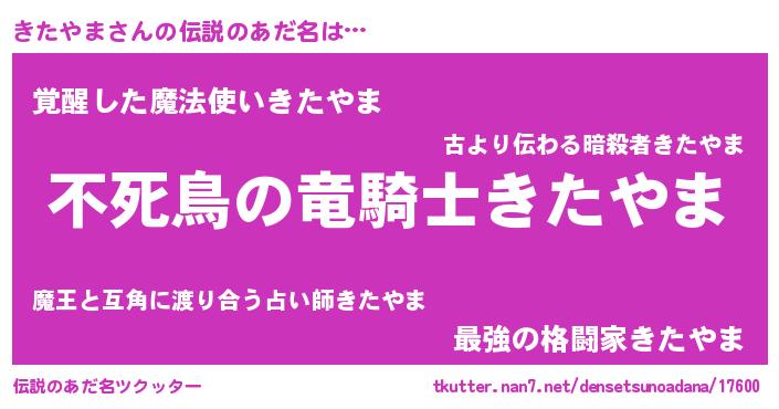 | 男性向けラノベタイトル風あだ名 | 『魔弾の王ときたやま』『きたやまの憂鬱』 |