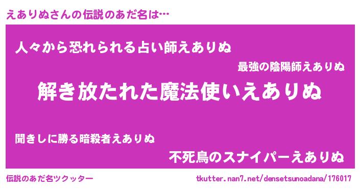 | 胡散臭い通販商品みたいなあだ名 | 『伝統あるサプリメント…その名も「えありぬ」』 |