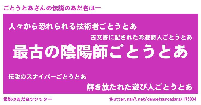 | 男性向けラノベタイトル風あだ名 | 『転生したらごとうとあだった件』 |