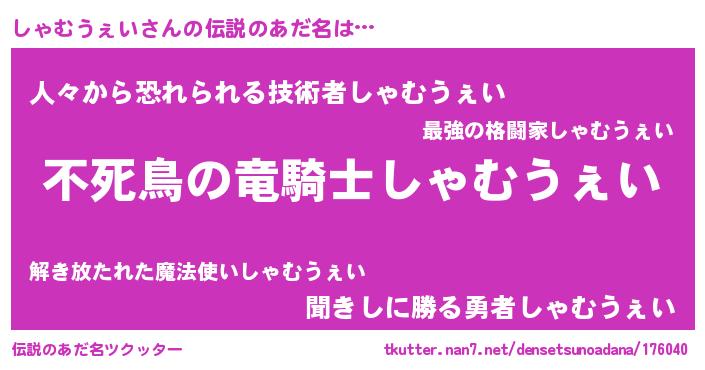 | ヘコむあだ名 | 『しゃふぇ~』『しゃむうぇい(遠い目)』 |