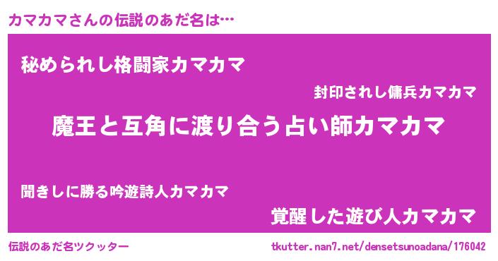 | 女子向けラノベタイトル風あだ名 | 『カマカマ恋絵巻』『闇のカマカマ』 |