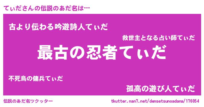 | 意味不明あだ名 | 『てぃだフォーエバー』『自称てぃだ』 |