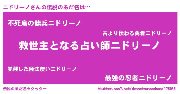 | 女子向けラノベタイトル風あだ名 | 『悪役ニドリーノに転生したようですが、知った事ではありません』 |