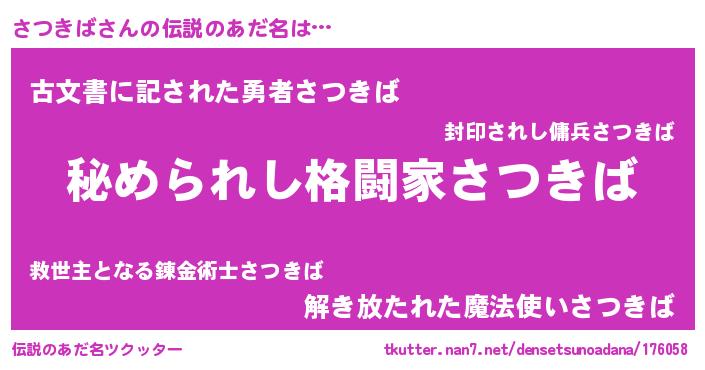 | ファンタジー風あだ名 | 『エターナルサツキバー』『ゼサツトゥ』 |
