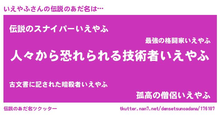 | ヒーロー風カッコイイあだ名 | 『正義の使者いえやふ』『仮面イエダー』 |