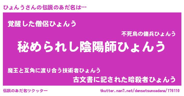 | ポケモン風あだ名 | 『ヒョキング』『ヒョゴンZ』 |