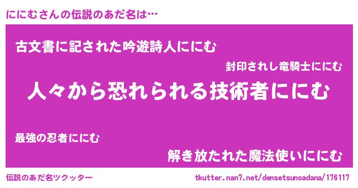 | ヘコむあだ名 | 『ににむ(笑)』『ににっちょ』 |