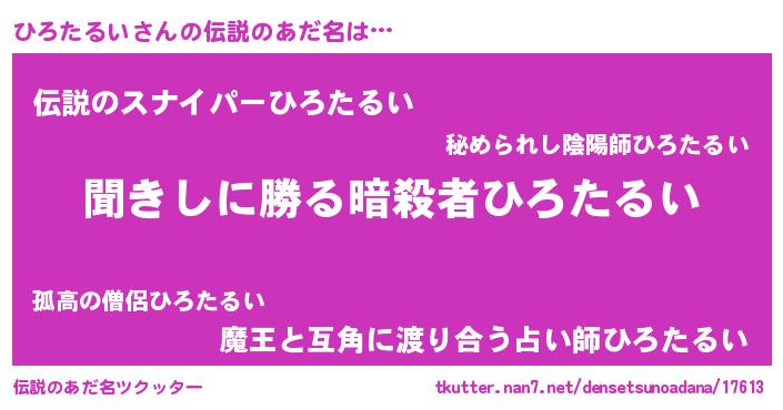 | ヒーロー風カッコイイあだ名 | 『仮面ヒロダー』『ネオヒロタルイ』 |