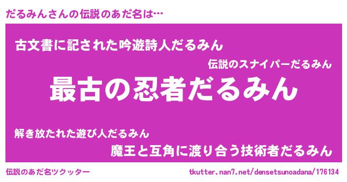 | 男性向けラノベタイトル風あだ名 | 『転生したらだるみんだった件』 |