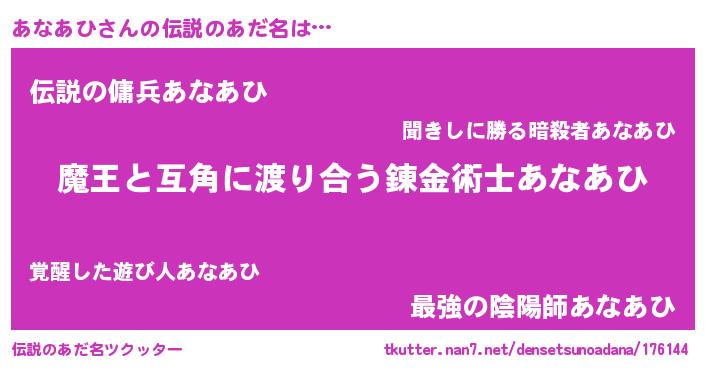 | ヒーロー風カッコイイあだ名 | 『サイバー戦士アナアヒ』『仮面アナダー』 |