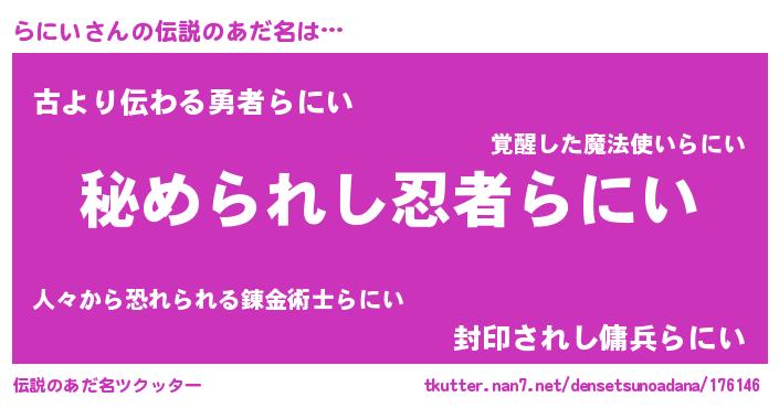 | 意味不明あだ名 | 『らにいフォーエバー』『永久保存らにい』 |