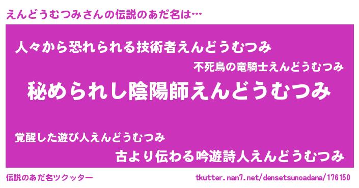 | 意味不明あだ名 | 『えんどうむつみフォーエバー』 |