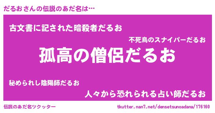 | 女子向けラノベタイトル風あだ名 | 『だるおは平凡を望む』『闇のだるお』 |