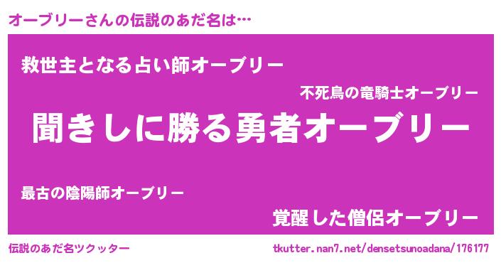 | 意味不明あだ名 | 『永久保存オーブリー』『自称オーブリー』 |