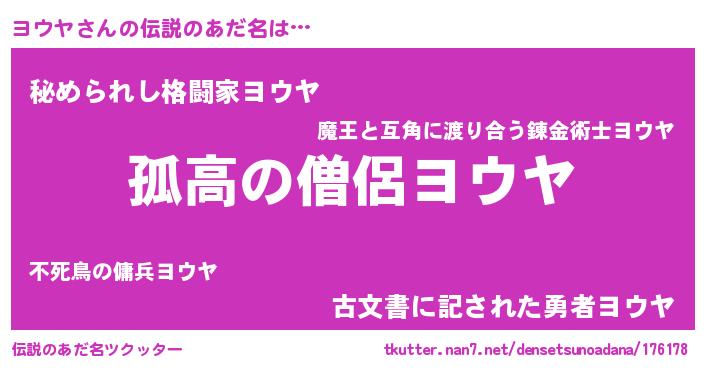 | 男性向けラノベタイトル風あだ名 | 『ダンジョンにヨウヤを求めるのは間違っているだろうか』 |