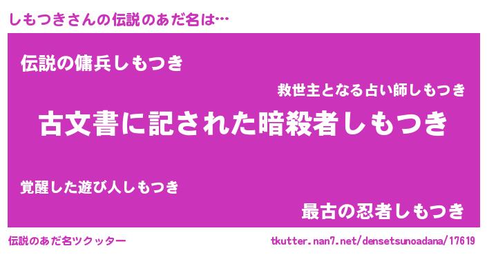 | ヘコむあだ名 | 『しもつき(笑)』『しもにゅー』 |