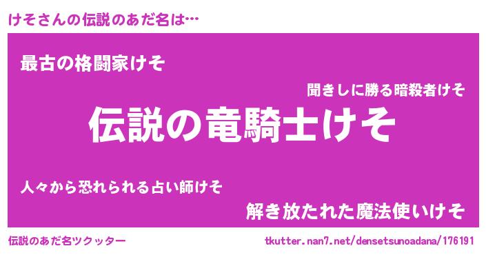 | 男性向けラノベタイトル風あだ名 | 『はたらくけそさま!』『ケソスレイヤー』 |