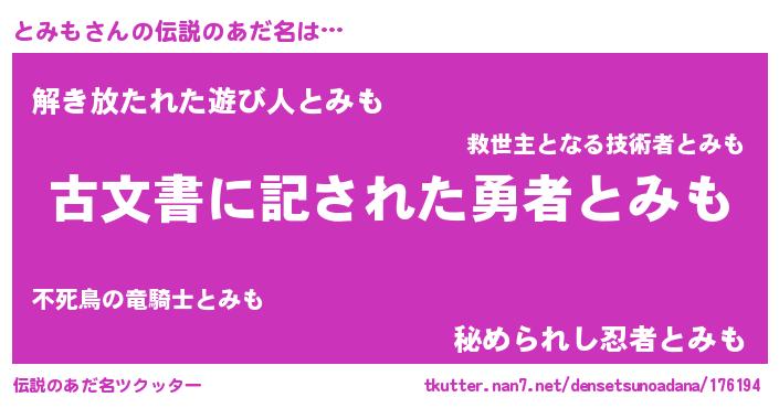 | ヒーロー風カッコイイあだ名 | 『ネオトミモ』『黄金騎士トミ』 |