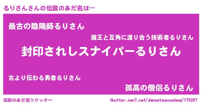 | 男性向けラノベタイトル風あだ名 | 『ルリサンアートオンライン』 |