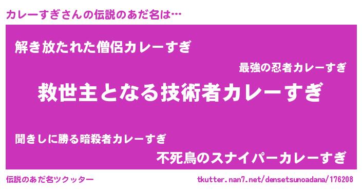 | ヒーロー風カッコイイあだ名 | 『天空の使者カレーすぎ』『幻影騎士カレ』 |