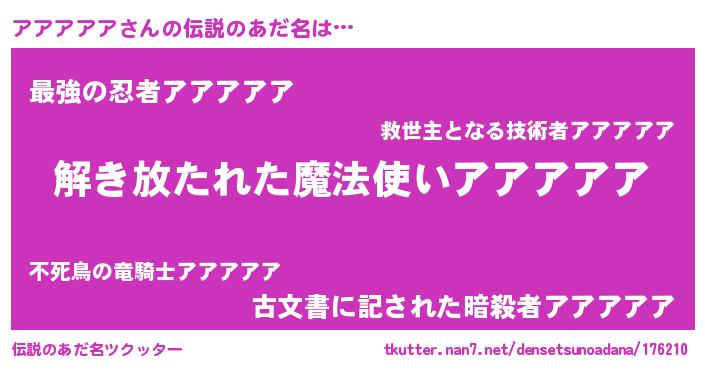 | 男性向けラノベタイトル風あだ名 | 『転生したらアアアアアだった件』 |