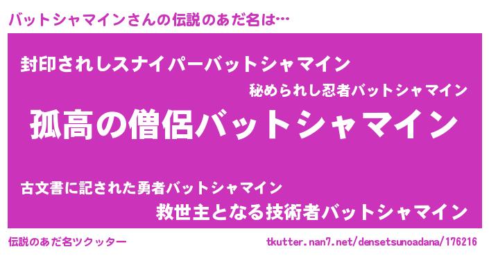 | 男性向けラノベタイトル風あだ名 | 『バットシャマインスレイヤー』 |