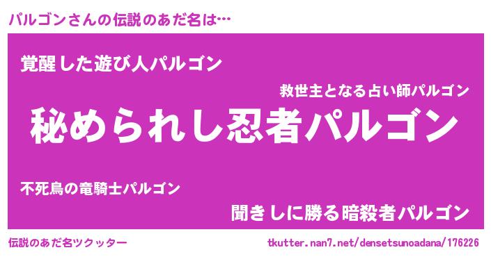 | 意味不明あだ名 | 『パルゴンフォーエバー』 |