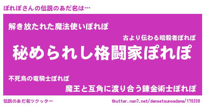 | 男性向けラノベタイトル風あだ名 | 『やはりぽれぽの青春ラブコメはまちがっている 』 |