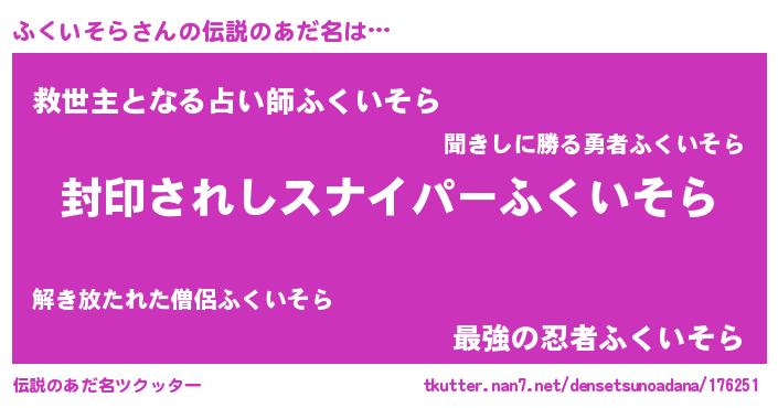 | 肩書あだ名 | 『ふくいそら上級大将』『ふくいそら助手』 |