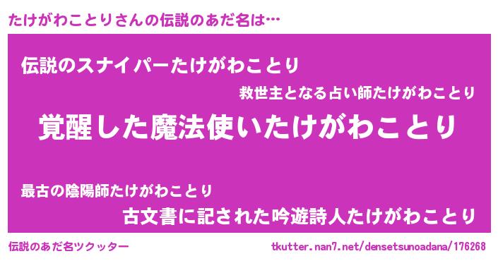 | 意味不明あだ名 | 『自称たけがわことり』 |