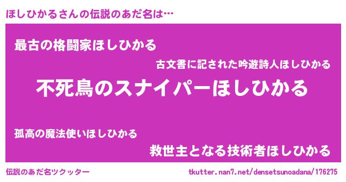 | ヒーロー風カッコイイあだ名 | 『スーパーホシヒカル』『ネオホシヒカル』 |