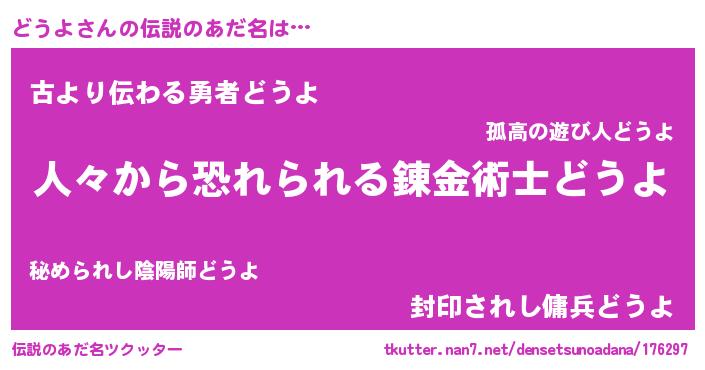 | 意味不明あだ名 | 『自称どうよ』『たけのこ科どうよ属』 |