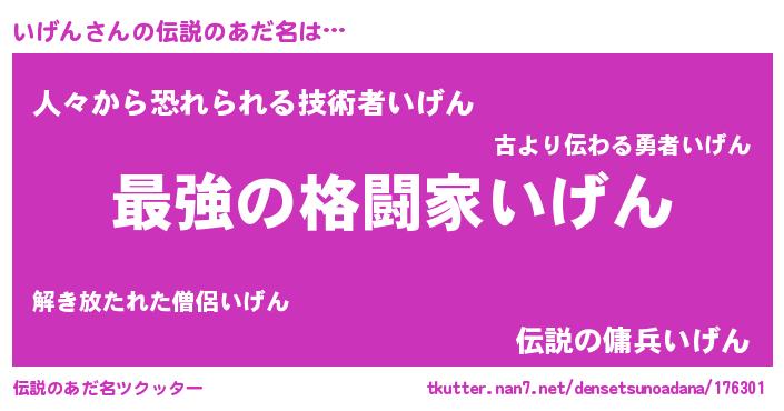 | ヒーロー風カッコイイあだ名 | 『ウルトラいげんマン』『仮面イゲダー』 |
