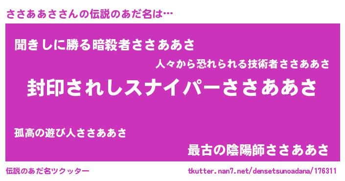 | 意味不明あだ名 | 『住所不定無職ささああさ(81歳)』 |