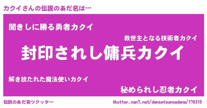 | 男性向けラノベタイトル風あだ名 | 『カクイアートオンライン』 |