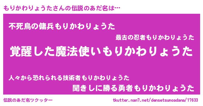 | 女子向けラノベタイトル風あだ名 | 『もりかわりょうた様がみてる』 |