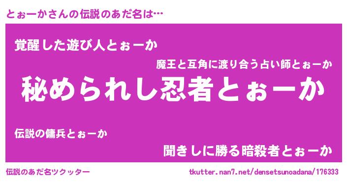 | 意味不明あだ名 | 『とぉーかフォーエバー』『自称とぉーか』 |
