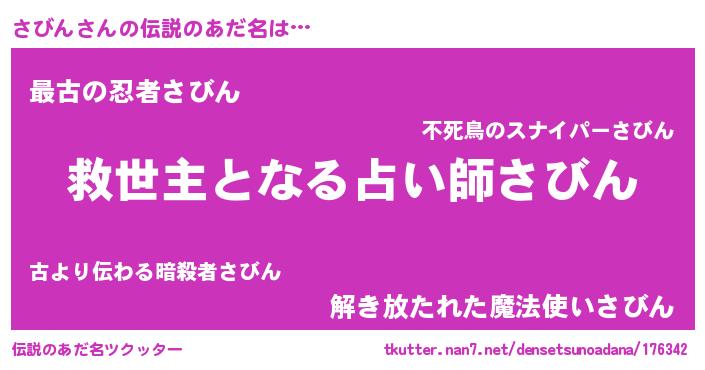 | ヒーロー風カッコイイあだ名 | 『天空の使者さびん』『銀牙騎士サビ』 |