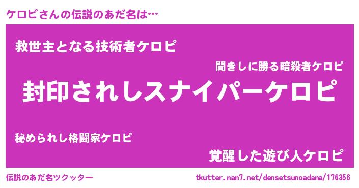| 胡散臭い通販商品みたいなあだ名 | 『あなたにだけ特別に提供する世界で10本だけ現存している希少なブランデー…その名も「ケロピ」』 |
