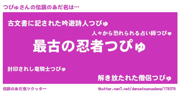 | 意味不明あだ名 | 『自称つぴゅ』『つぴゅフォーエバー』 |