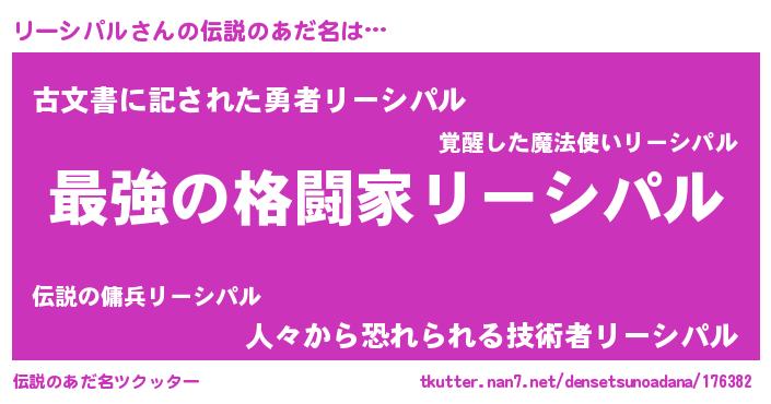 | 意味不明あだ名 | 『自称リーシパル』『永久保存リーシパル』 |