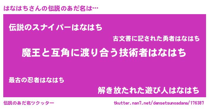 | 意味不明あだ名 | 『住所不定無職はなはち(7歳)』 |