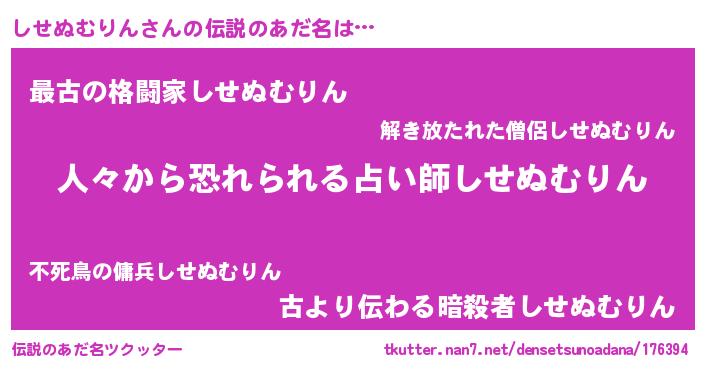 | 意味不明あだ名 | 『自称しせぬむりん』 |