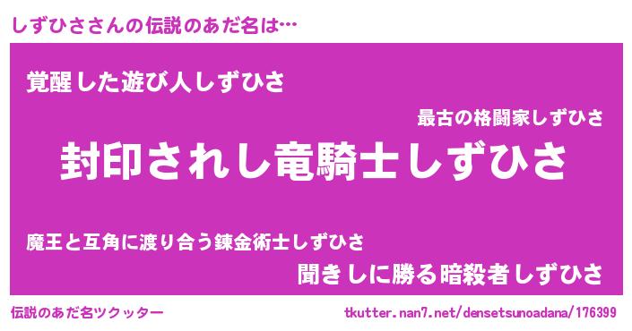 | 胡散臭い通販商品みたいなあだ名 | 『億万長者になれるブレスレット…その名も「しずひさ」』 |