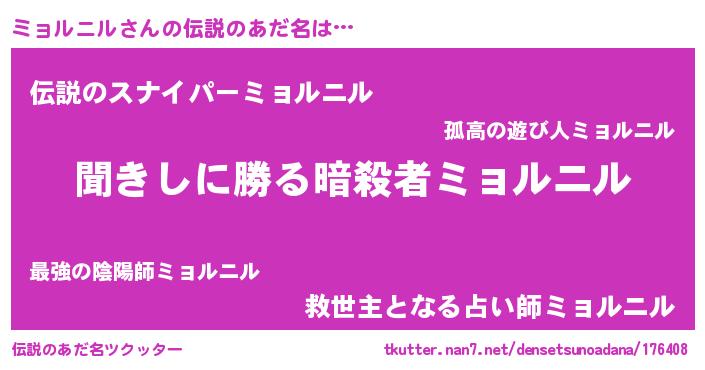 | 意味不明あだ名 | 『永久保存ミョルニル』『自称ミョルニル』 |