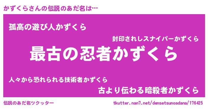 | 男性向けラノベタイトル風あだ名 | 『この素晴らしい世界にかずくらを!』 |