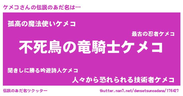 | 意味不明あだ名 | 『たけのこ科ケメコ属』『ペロリンケメコ』 |