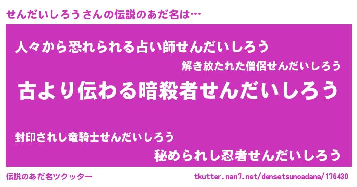 | 肩書あだ名 | 『せんだいしろう閣下』 |